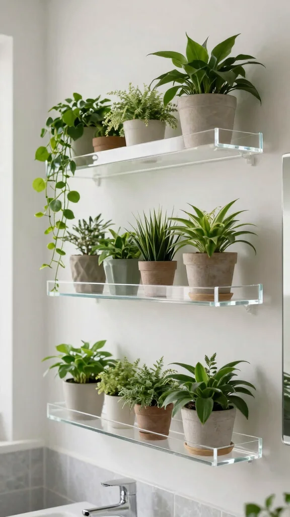 Incorporating plants into your bathroom can enhance its atmosphere, and acrylic shelves provide a perfect platform for your greenery. With proper lighting and placement, your plants can thrive while being beautifully displayed. This combination of nature and design creates a refreshing vibe in your space.