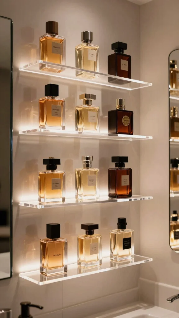 This method elevates your fragrance collection while enhancing the overall decor of your bathroom.