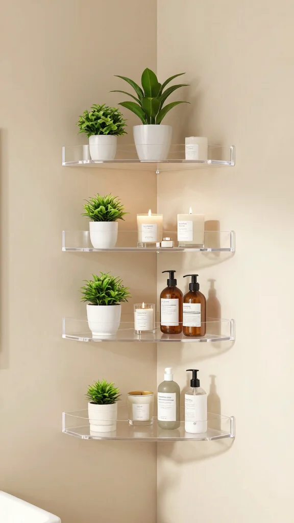 – Acrylic Corner Shelves: Utilize otherwise ignored corners to add storage without cluttering your space.
