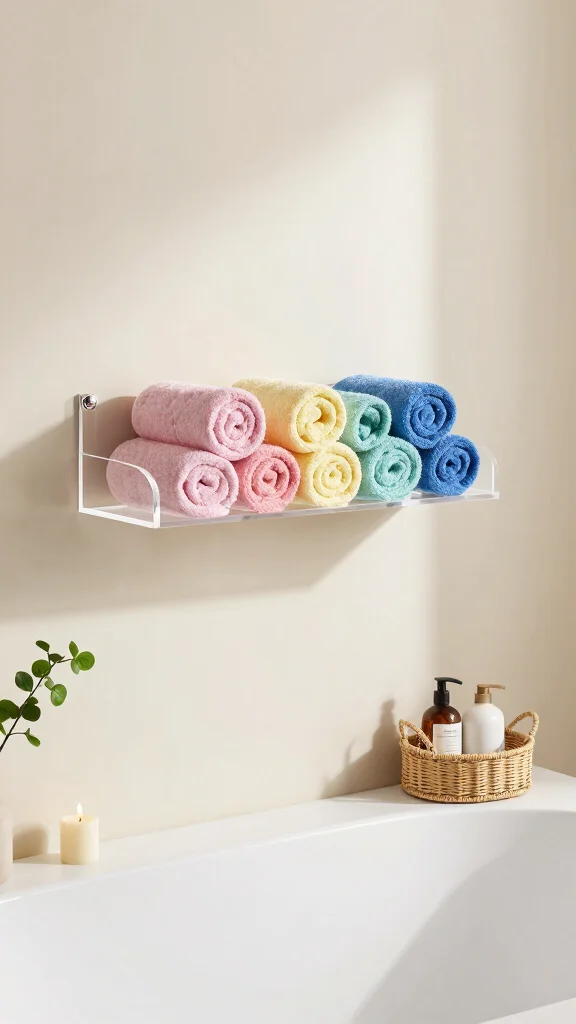 Acrylic shelves are perfect for organizing bath towels and essentials, providing a sleek and modern look. By neatly arranging rolled towels on these shelves, you create a spa-like atmosphere while ensuring everything is within arm’s reach. This minimalist approach promotes cleanliness and order in your bathroom.