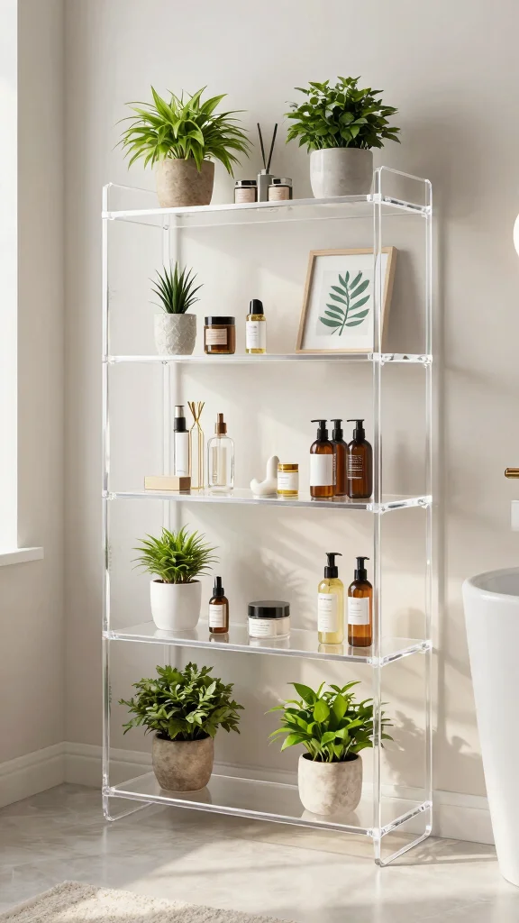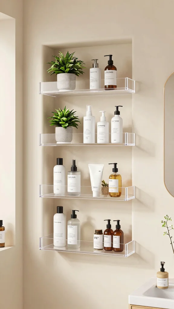 You can expect to discover practical tips on how to incorporate floating shelves, organize beauty products, and even showcase plants elegantly. Each idea is designed to help you maximize your space while keeping your bathroom looking sleek and uncluttered. Ready to dive in? Let’s explore these acrylic shelves that can transform your bathroom into a minimalist haven.