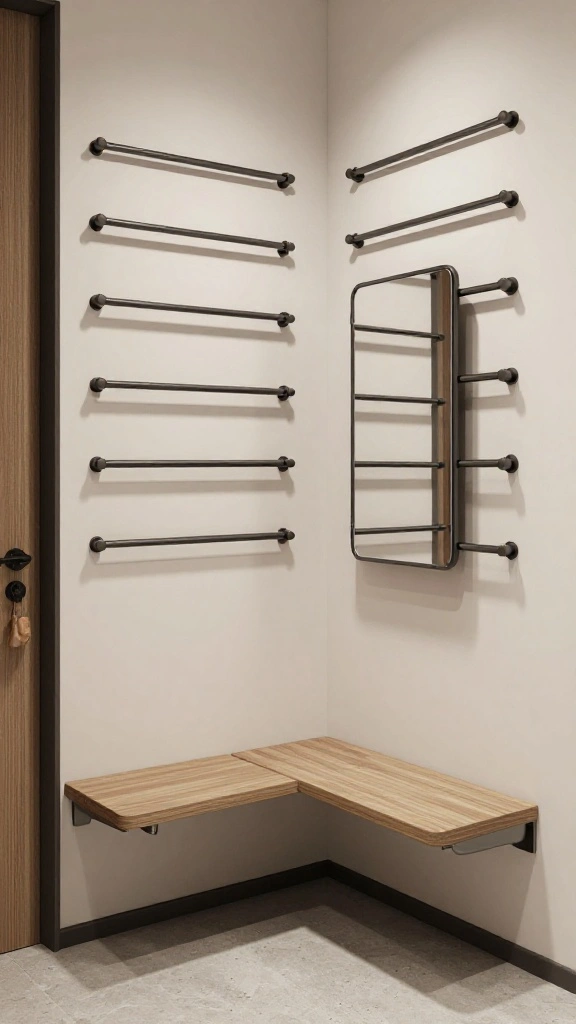 Incorporating functional hooks in your dressing room can blend utility with stylish design seamlessly. Seek chic, minimalist hooks that can hold bags, scarves, or hats without taking up valuable floor space. Hanging items off the ground keeps the room organized while adding decorative flair. Opt for finishes that coordinate with your decor, such as matte black or brushed gold, to enhance the overall aesthetic.