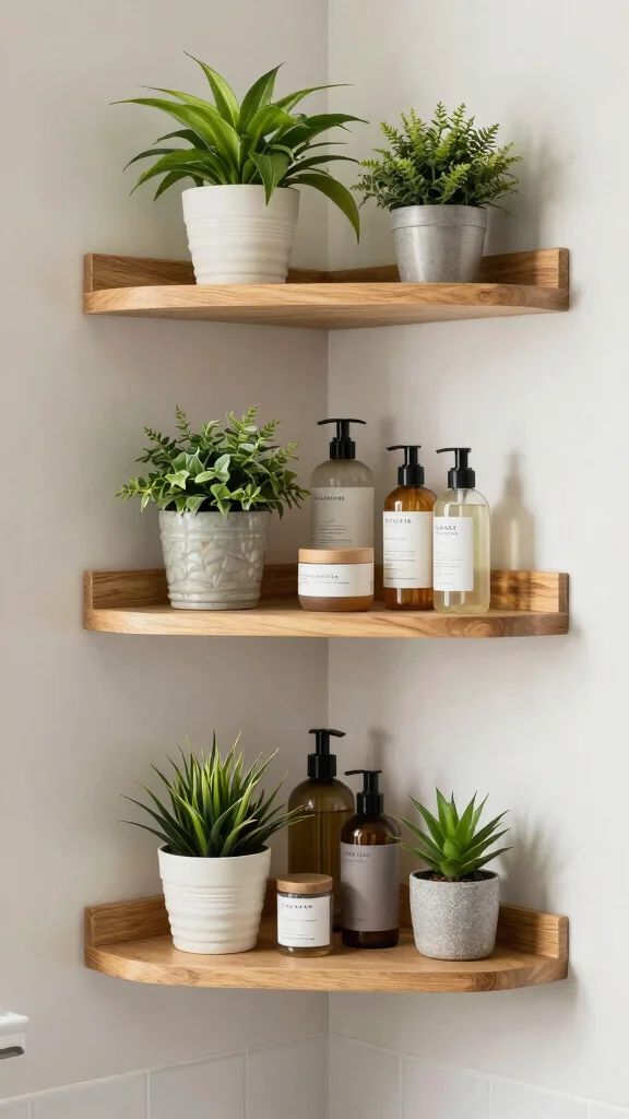 For a more dynamic look, consider tiered corner shelves that create a cascading effect. These shelves can double as displays for personal items, adding a decorative touch to your bathroom. This trend encourages creativity in utilizing every inch of your space.