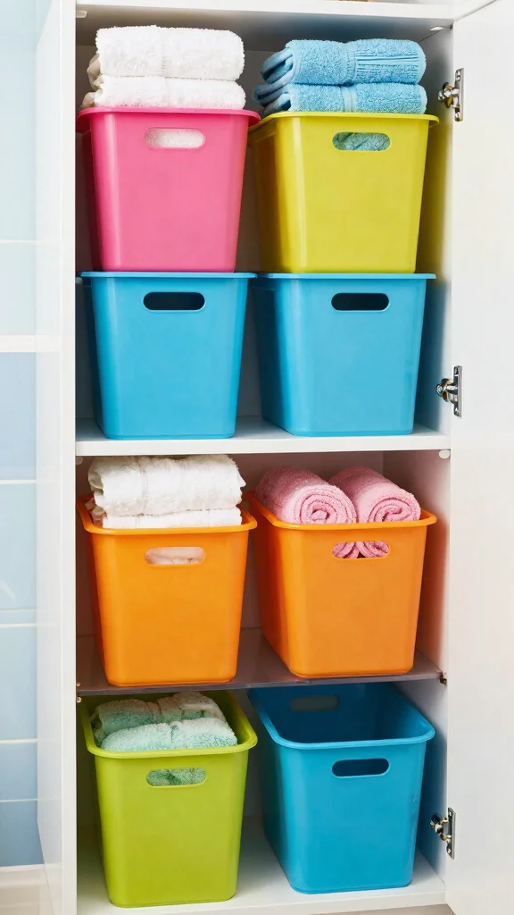 Color-coding your storage adds a fun and visually appealing element to organization. By designating colors for different categories, you can easily identify where everything belongs. Use colored bins, labels, or towels to create a cohesive look that not only brings order but also expresses your personality.