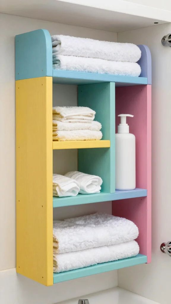 Color-coded storage transforms mundane organization into a delightful visual experience, making your bathroom both fun and functional.