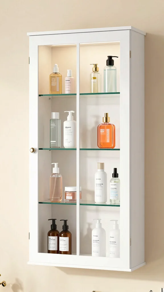 Glass-front cabinets provide a chic way to showcase your curated collection of bathroom essentials while keeping them dust-free. Perfect for spaces where aesthetics are essential, these cabinets allow you to display beautifully arranged items like perfumes and toiletries. Adjustable shelves within the cabinet can accommodate taller items, ensuring everything has its perfect place.