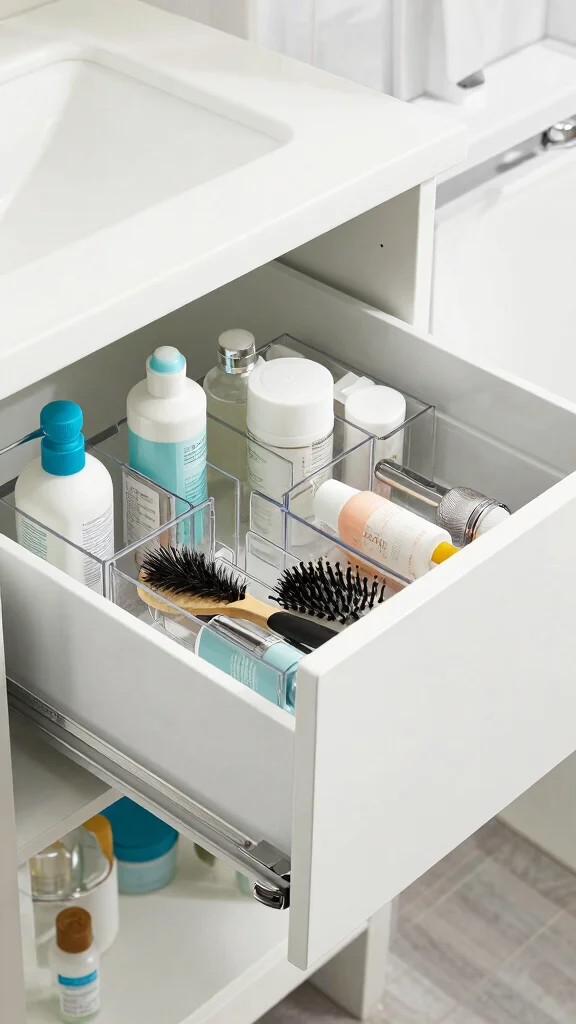 To enhance the look, consider painting or decorating the dividers to match your bathroom’s style. Adjustable dividers can easily adapt as your storage needs change, making them a flexible solution. DIY projects resonate with the trend of personalization in home organization.