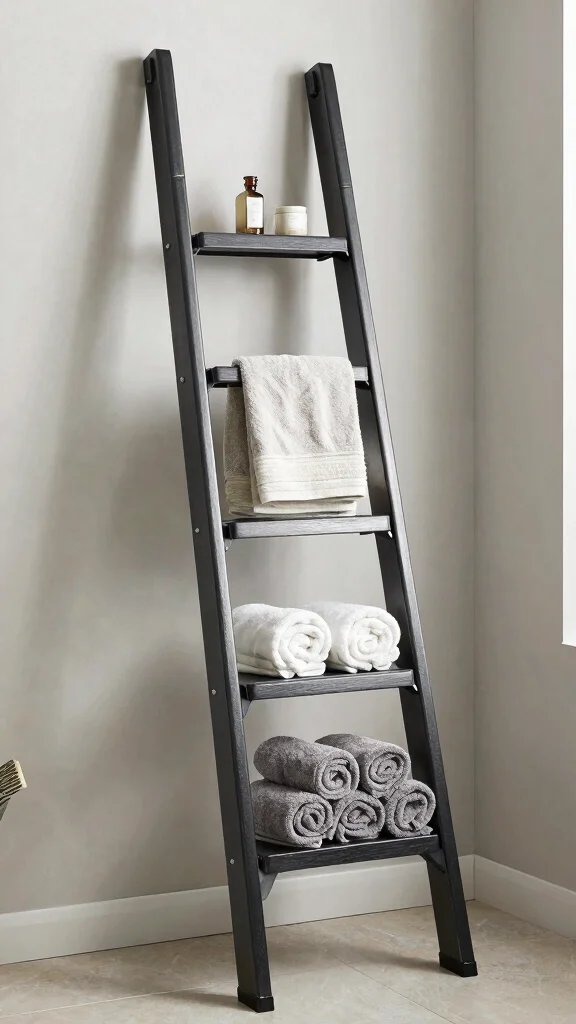 Fun fact: A leaning bathroom ladder can add up to 30% more usable storage in small spaces. Use the top rungs for decor and the lower ones for towels or magazines—it’s practical, stylish, and perfect with bathroom closet shelves.