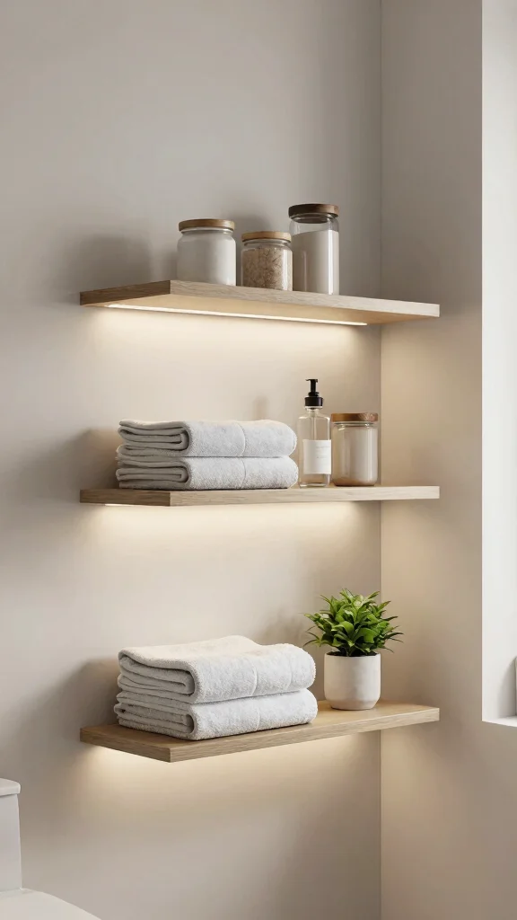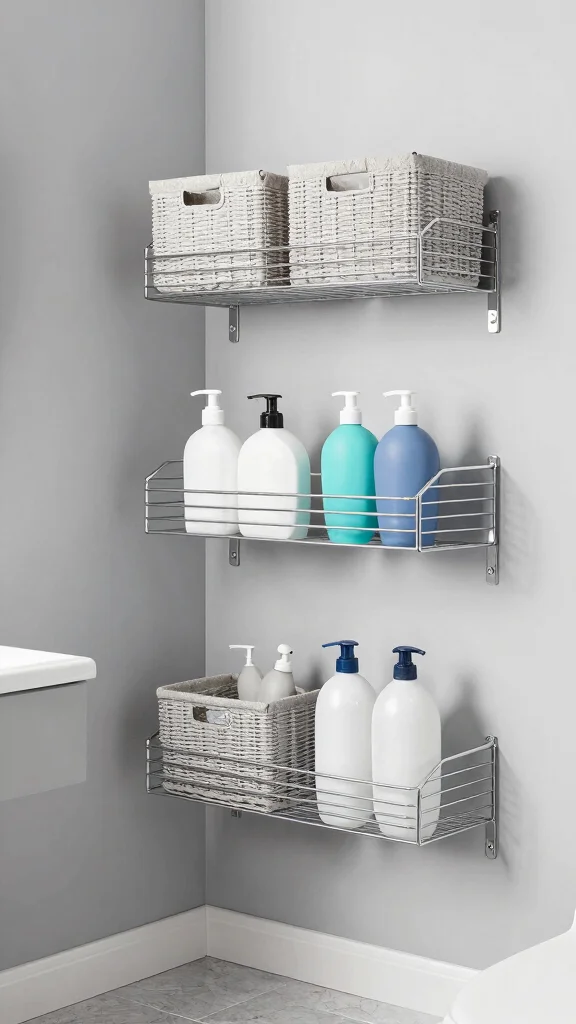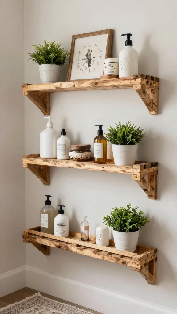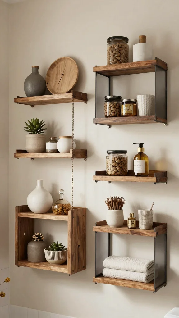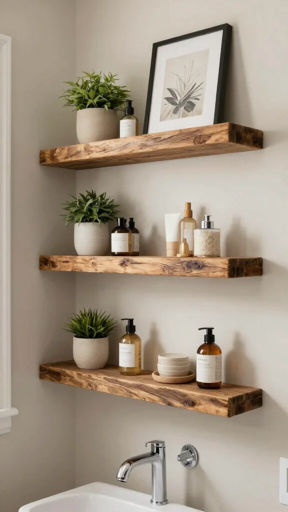These shelves offer ample space without being bulky, helping your bathroom feel more open. Use them to display decorative items like artful soap dispensers or small succulents that enhance your decor. Choosing colors or materials that blend with your existing decor contributes to a streamlined appearance.