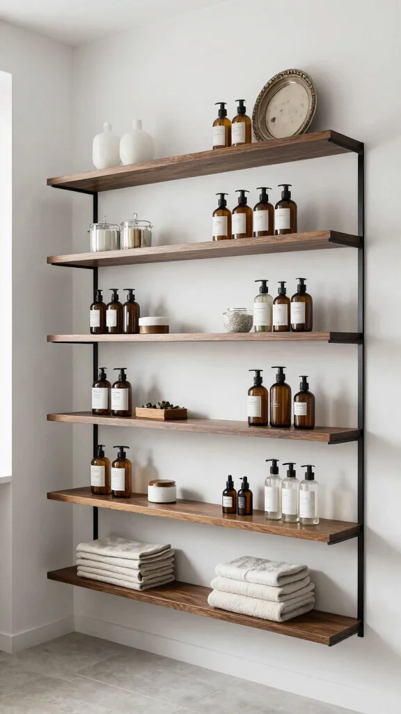 While open wooden shelves are a fantastic choice, some folks might prefer metal brackets for their durability or floating shelves for their minimalist appeal. If you’re after a specific look or have particular usage needs, exploring other options might be beneficial. Understanding your space and style will guide you to the perfect solution for your bathroom organization and design!