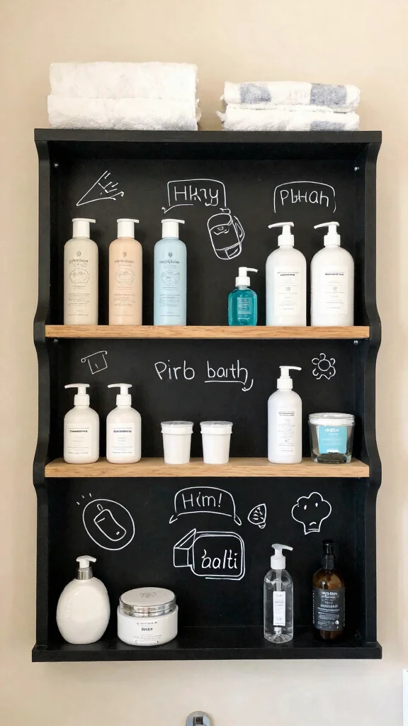 Integrating chalkboard shelves into your bathroom decor adds a playful element while also offering functionality. You can use chalk to label items or jot down reminders, making these shelves both practical and fun.