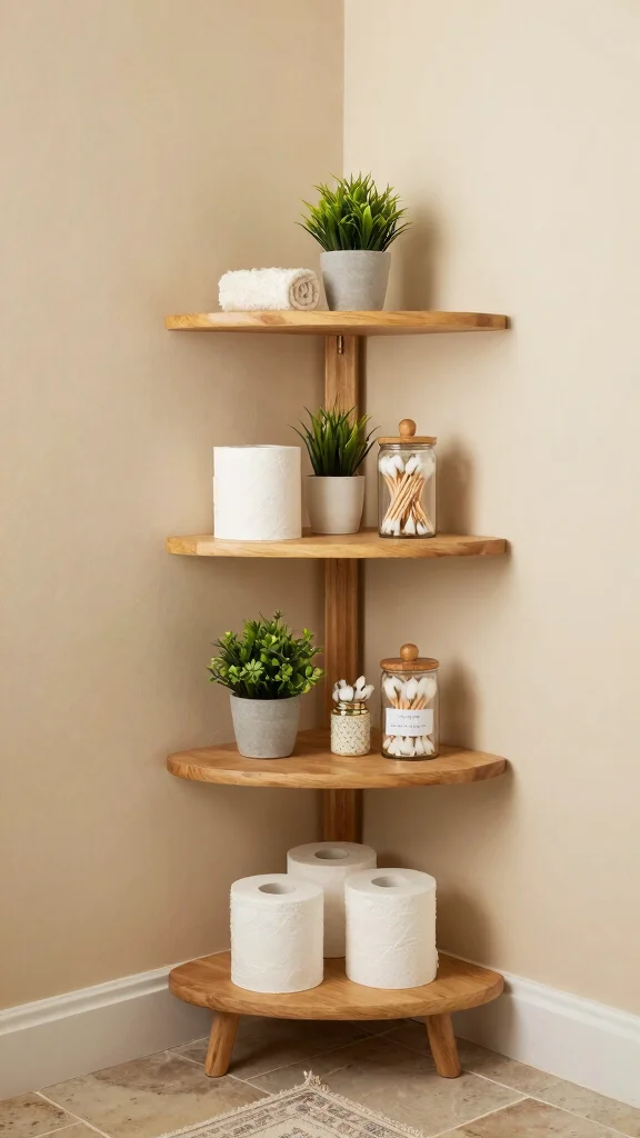 For practical use, place heavier items on lower shelves for stability, and keep lighter decor on top for an appealing display. Corner shelves are versatile and can accommodate everything from toilet paper to decorative plants, ensuring essentials are always within reach.