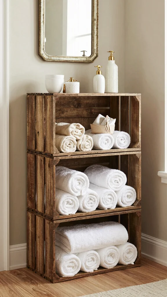 To style these shelves, utilize each tier for different types of items—one for towels, another for decor—creating a harmonious arrangement. Incorporating matching containers can enhance symmetry and color play in your decor.