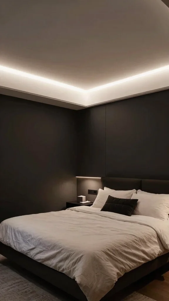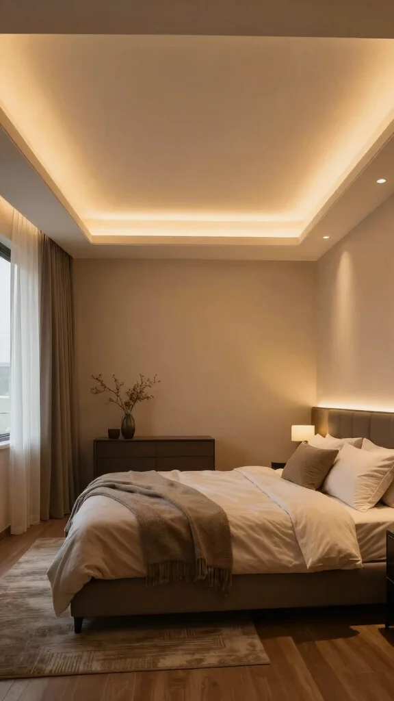 Answer: Combine decorative ceiling designs with hidden bedroom lighting ideas ceiling by using coves, medallions, or patterned ceilings that host soft LEDs along edges.
