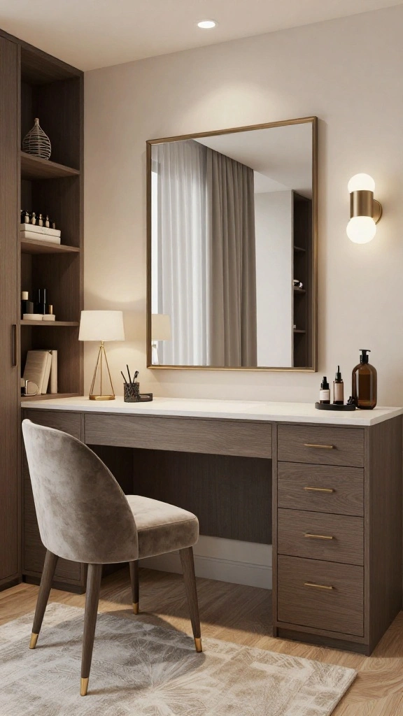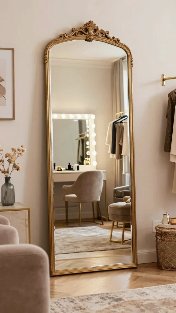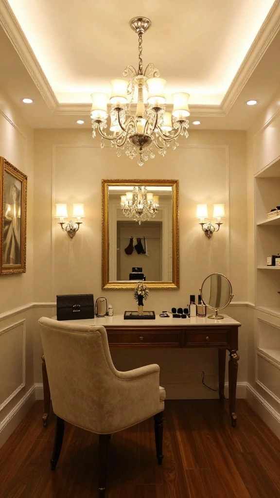 Strategically placed mirrors can transform your dressing room, creating an illusion of spaciousness. A large full-length mirror not only fulfills a practical need but also serves as a stunning design element. Choose ornate frames or unique shapes to infuse glamour, while positioning mirrors to reflect light and brighten the room.