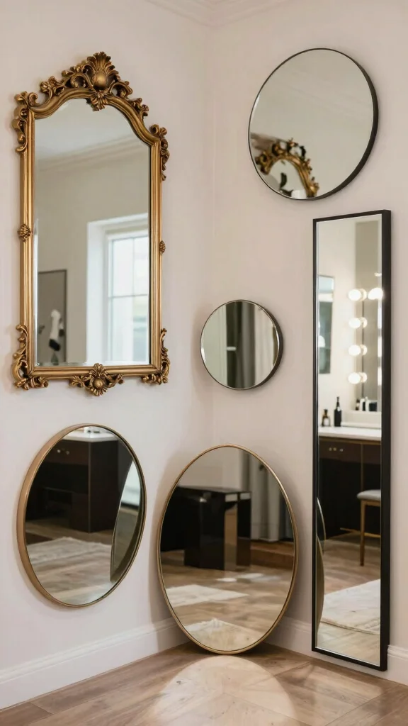 When selecting mirrors, choose styles that match your decor, whether modern or vintage. Place mirrors opposite windows to maximize natural light, or arrange multiple smaller mirrors for an eclectic appearance.