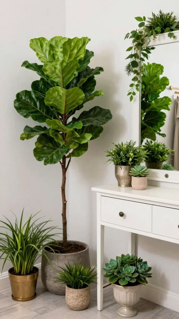 Incorporate plants or floral arrangements to bring life and freshness to your dressing room environment.