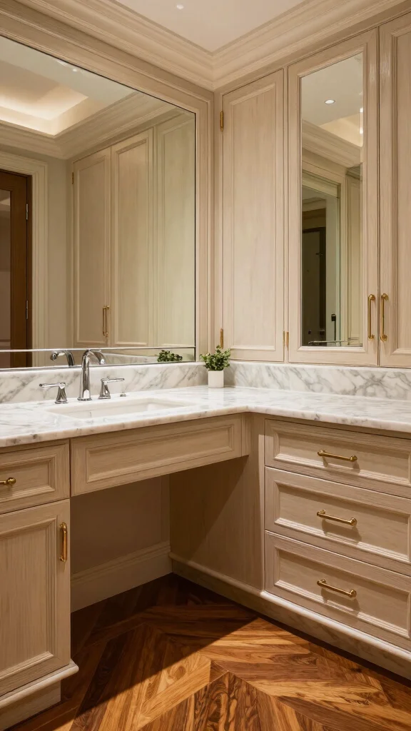 Answer: Invest in built-in storage that conceals clutter: deep drawers with dividers for accessories, pull-out trouser racks, shoe cubbies, and jewelry trays. Use glass-front cabinets for display while keeping a clean look. Add under-seat storage in a bench or ottoman. Use soft-close hardware and a cohesive hardware style to maintain an elegant dressing space. Finish with curated, high-quality accessories to elevate the luxury dressing room vibe.