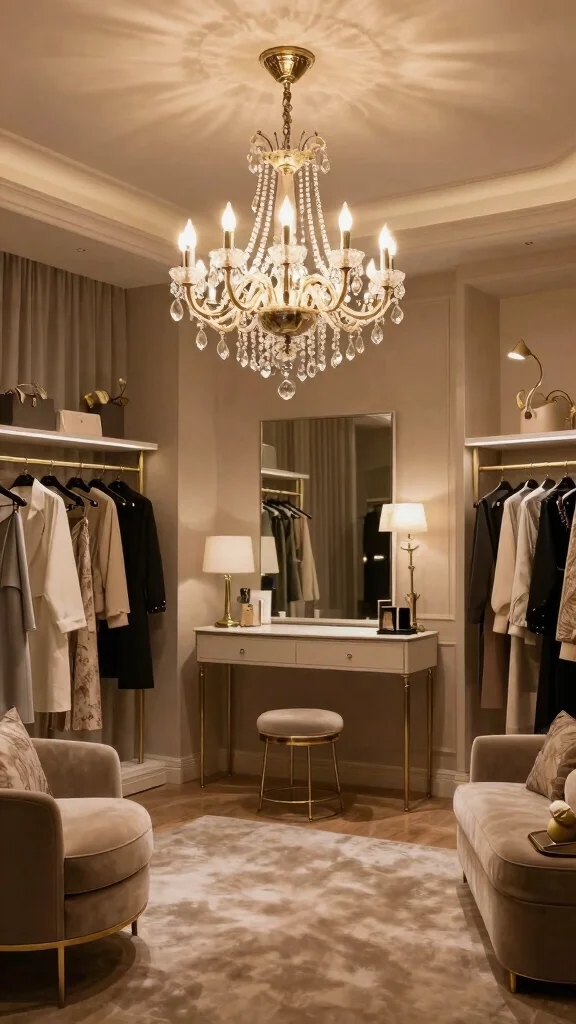 Opt for soft, ambient lighting to create a warm, inviting atmosphere perfect for trying on outfits.