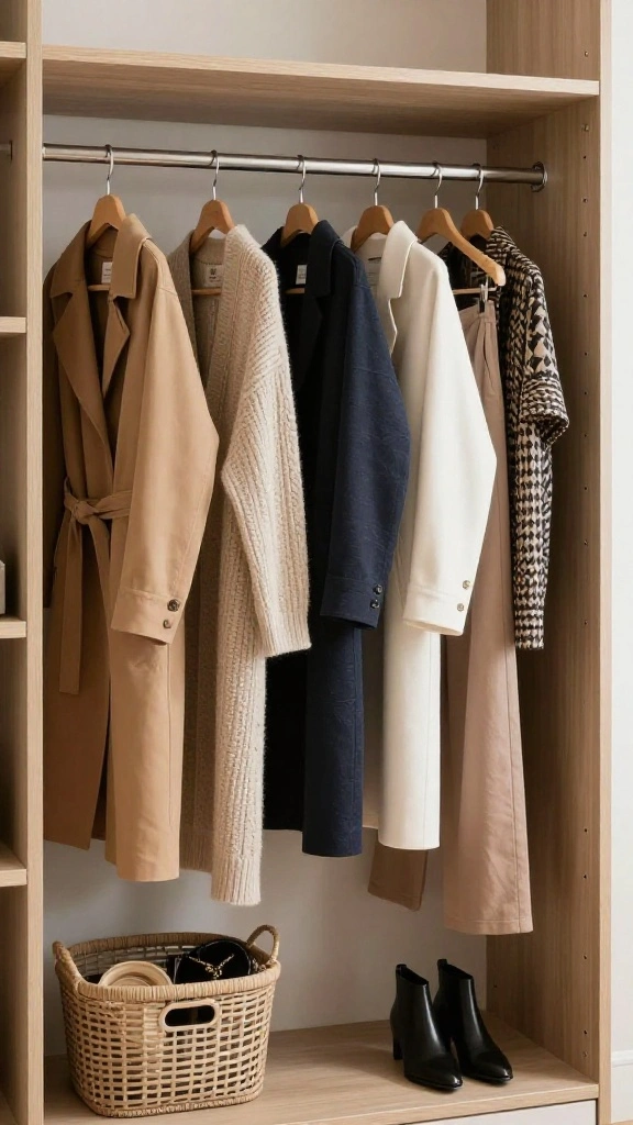 – Use stylish hangers and organize clothes by color or season.