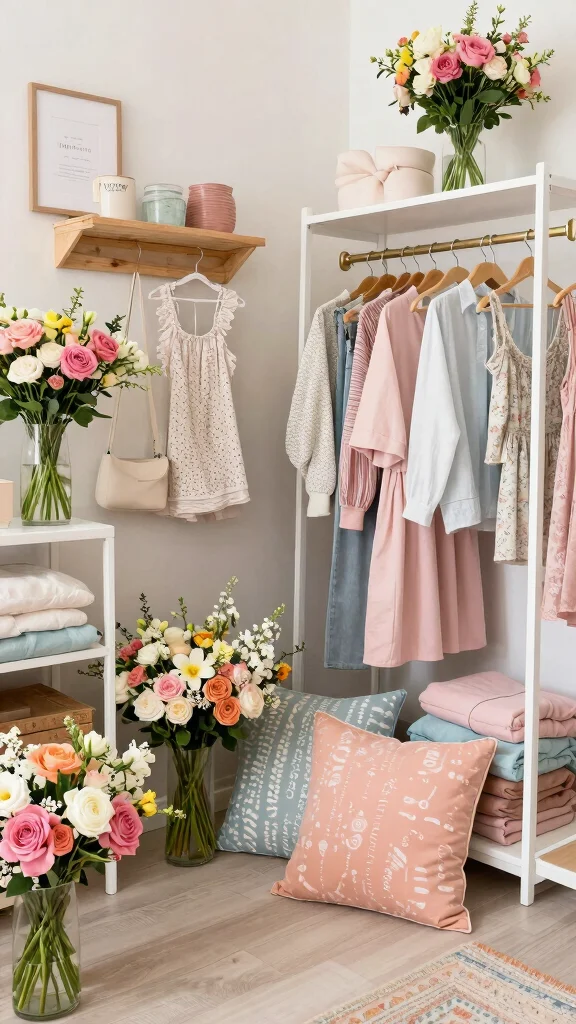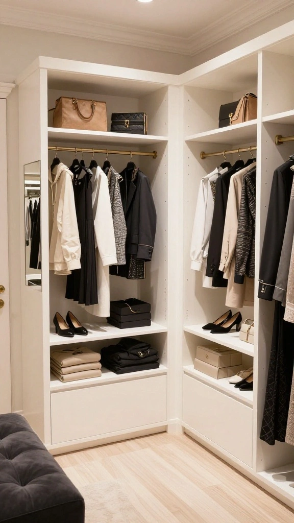 This setup creates a boutique feel in your dressing room, showcasing your personal style while keeping everything organized.