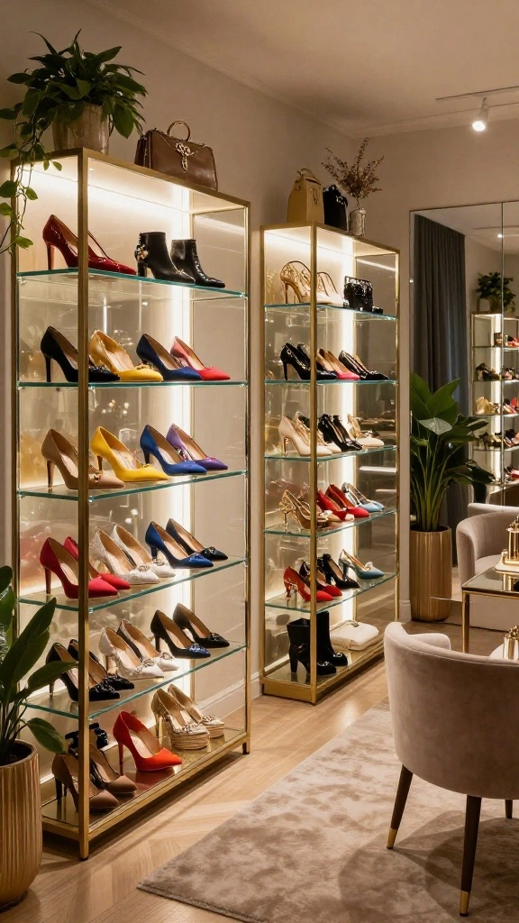 Displaying your favorite accessories in glass display cases adds a modern flair to your boutique dressing room. The transparency of glass showcases your personal style while keeping the room organized and clutter-free. Choose cases with unique shapes or finishes to accentuate your decor and make a statement.