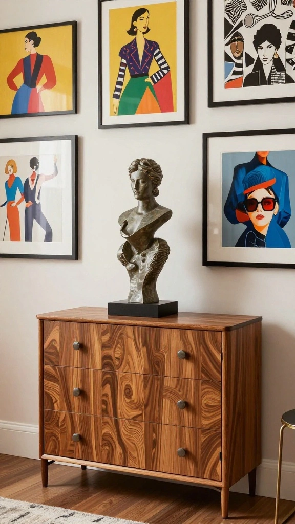 – Incorporate a gallery wall with framed fashion prints or personal photos.