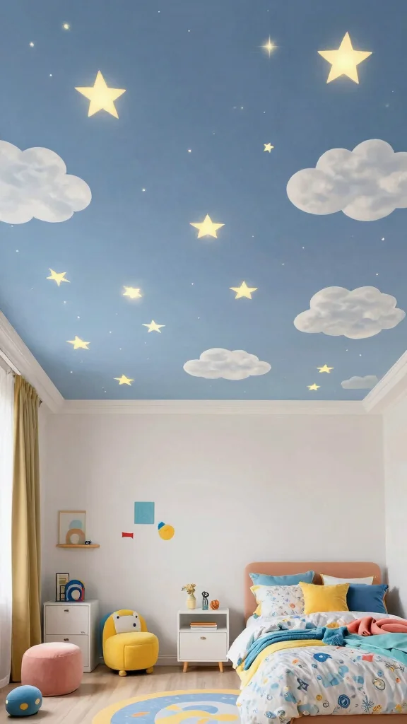 Ceiling decals can infuse a sense of fun and creativity into any room, making them an exciting and versatile ceiling art idea.