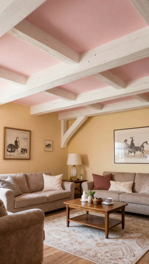 Fun fact: A single painted beam can become the punch of ceiling art ideas in a small room, often costing under $50 in supplies. Opt for matte finishes to reflect light and keep the space feeling open and inviting.