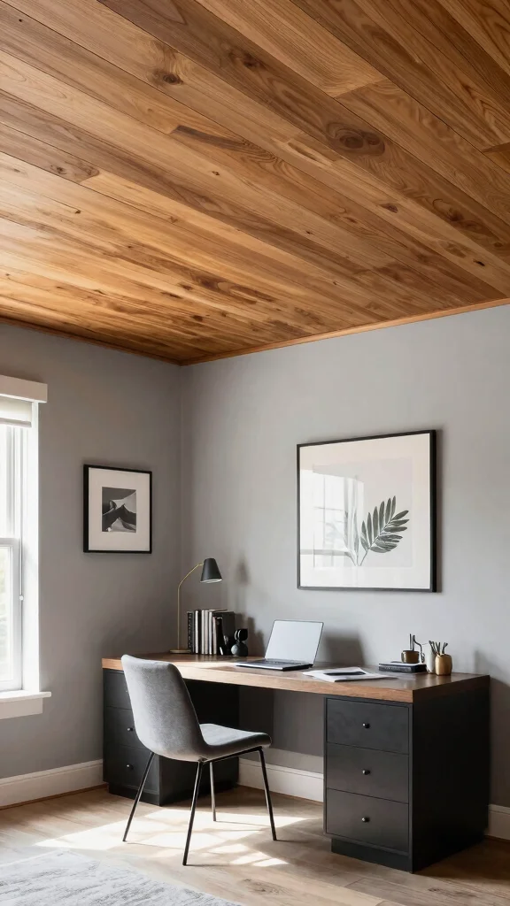 Artistic wood paneling can infuse your ceiling with warmth and sophistication, ranging from classic finishes to modern geometric arrangements. This design choice not only enhances visual appeal but also improves insulation, creating a cozier environment. In small rooms, using lighter wood tones or even painted finishes can add charm without making the space feel confined.