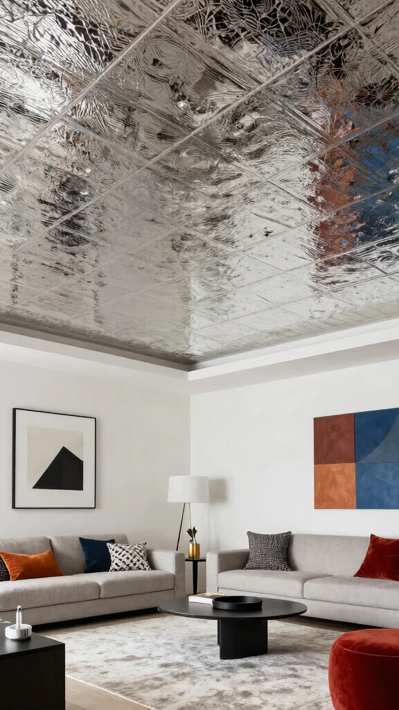Reflective ceiling tiles are an innovative choice for maximizing light and creating the illusion of spaciousness. These tiles, available in various styles such as sleek metallics or mirrored glass, bounce light throughout the room, making small areas feel larger and brighter. Reflective surfaces not only enhance the ambiance but can also serve as striking art pieces in their own right.