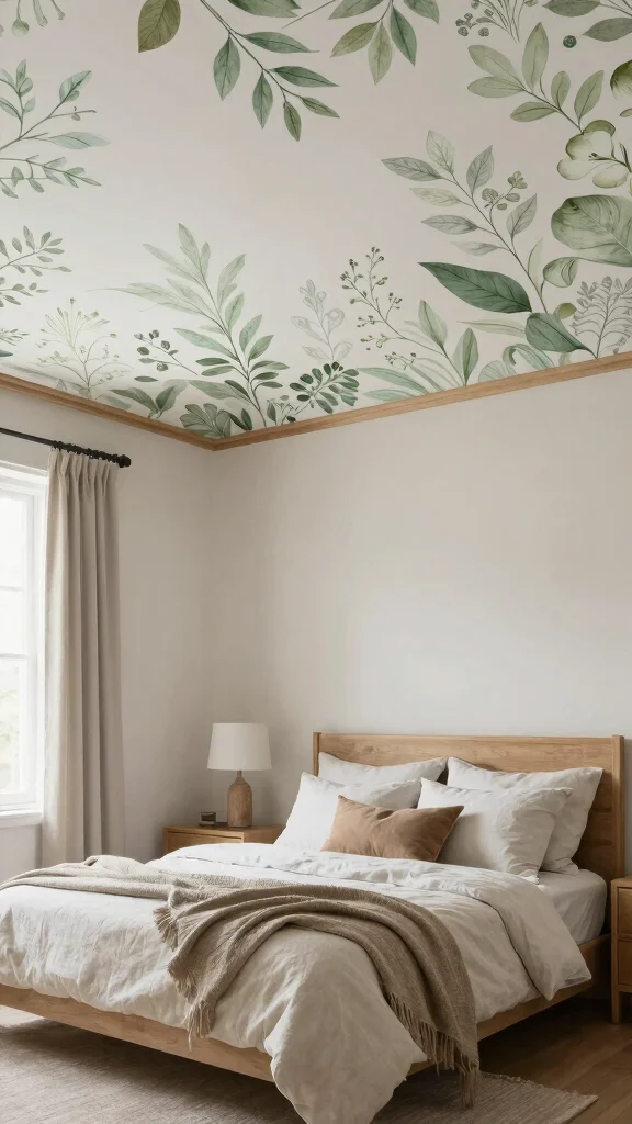 This ceiling art idea is versatile and stylish, allowing you to personalize your space while maintaining a warm and cozy ambiance.