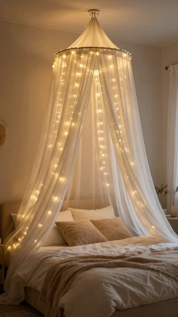 When creating ceiling canopies, opt for sheer fabrics to maintain an open, airy ambiance. Hanging canopies at varying heights can introduce visual interest, and adding string lights can enhance the cozy atmosphere. Choose patterns or colors that complement your overall decor theme for a harmonious look.