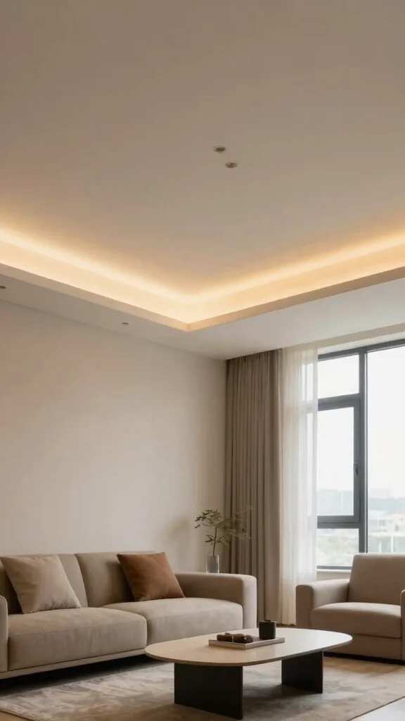 Let your ceiling border shine with lighting-centric designs that incorporate LED strips or recessed lighting. This approach not only highlights your borders but also enhances the entire room’s ambiance, especially in small spaces where a cozy atmosphere is vital.With adjustable colors and brightness, you can easily shift the room’s mood—choose a soft, warm glow for relaxation or bright, cool light for productivity.Installation tips: