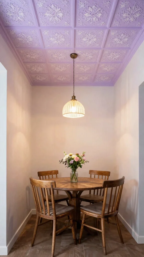 Stencils provide an opportunity to introduce intricate patterns to your ceiling, adding both beauty and a personal touch. This idea works particularly well in smaller rooms, where delicate designs can enhance rather than overpower the space. From floral motifs to elegant swirls, stenciled patterns can beautifully reflect your style.Using stencils invites creativity—consider layering colors or incorporating metallic paints for a stunning finish. You can also tie in the stenciling with other decor elements, such as fabrics or furniture, to create a cohesive look.Stencil application tips: