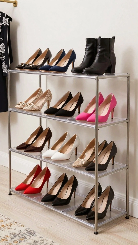 Shoes can often take up valuable space, but with functional footwear solutions, you can stylishly keep them organized. Consider a tiered shoe rack that displays your favorite pairs, or opt for clear storage boxes to keep them visible and protected. A dedicated shoe wall, showcasing each pair like art, can enhance the decor while making it easy to grab your go-to styles.