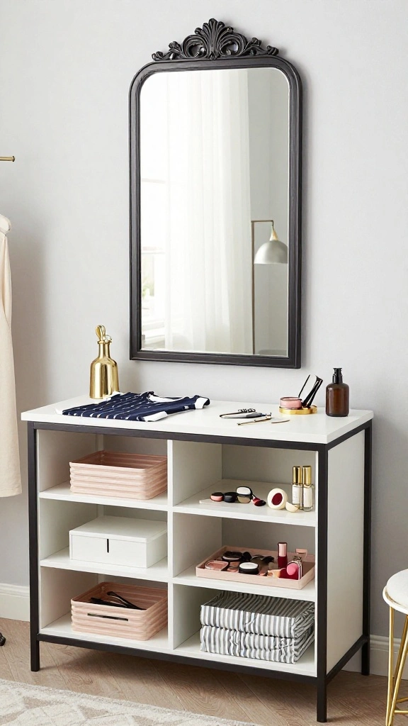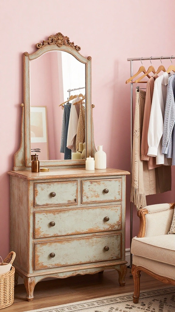 3. Repurpose furniture: Use items you already own, like old dressers or bookshelves, and give them a new life in your dressing room.