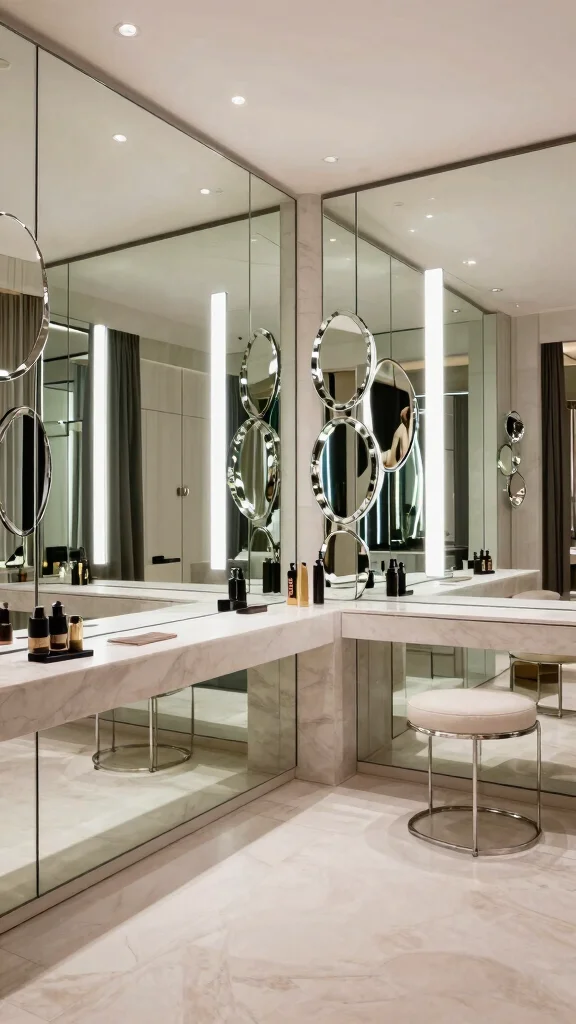 This focus on mirrors not only enhances the room’s openness but also showcases how thoughtful design can elevate the overall aesthetic.