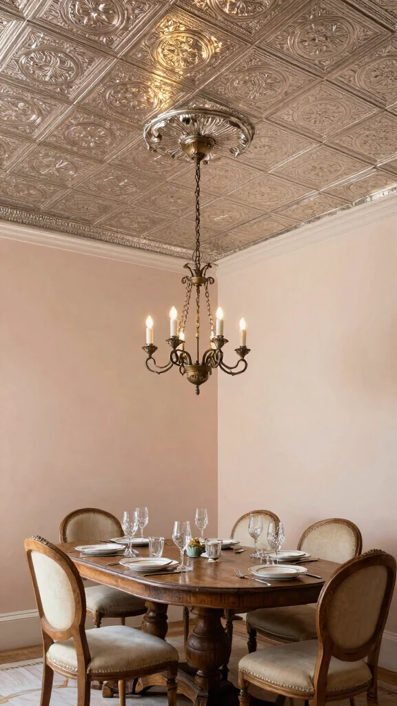 What are some vintage-inspired decorative ceiling ideas that add character to a room?