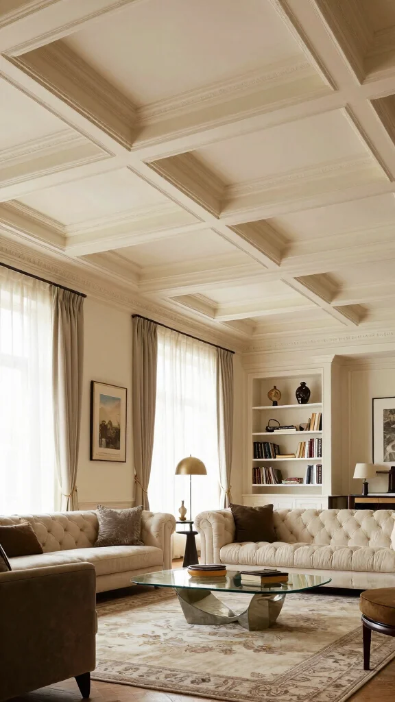 Fun fact: coffers can visually widen a room by up to 20%. With decorative ceiling ideas, painting panels in light shades boosts brightness and perceived height—no major remodel required.
