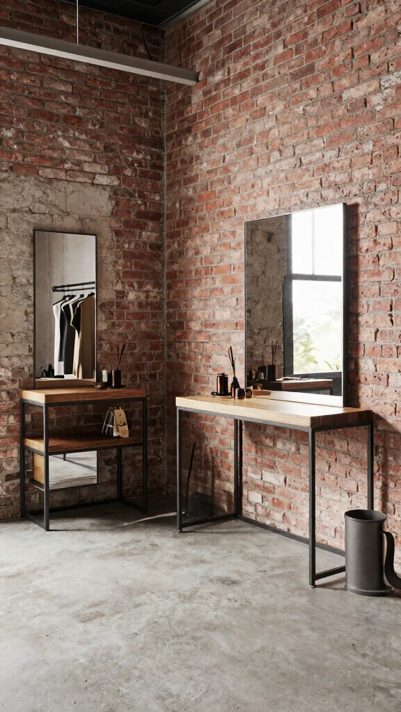 For a trendy dressing room vibe, consider adopting an industrial style characterized by raw materials and minimalist furniture. Exposed brick, wooden beams, and metal accents create a unique aesthetic that beautifully blends modern and rustic elements. An industrial dressing room can feel spacious due to its open layout while providing practical storage solutions, celebrating simplicity and functionality.