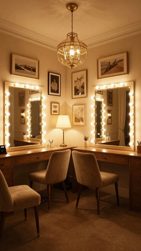 This thoughtful approach not only enriches your dressing room’s aesthetic but also creates a cozy retreat where you can relax and enjoy your routine.