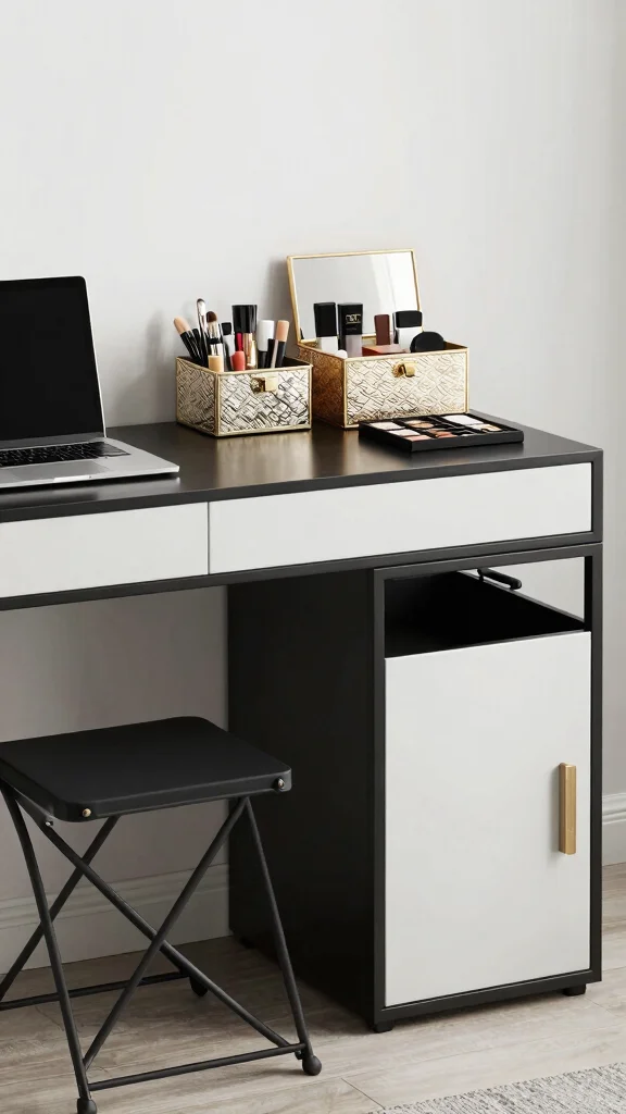 To maximize functionality, consider incorporating a folding chair that can be easily stored away when not in use. Use decorative boxes to keep beauty products organized, ensuring the surface remains neat. The table’s height should be suitable for both your beauty routine and any work tasks you may have.