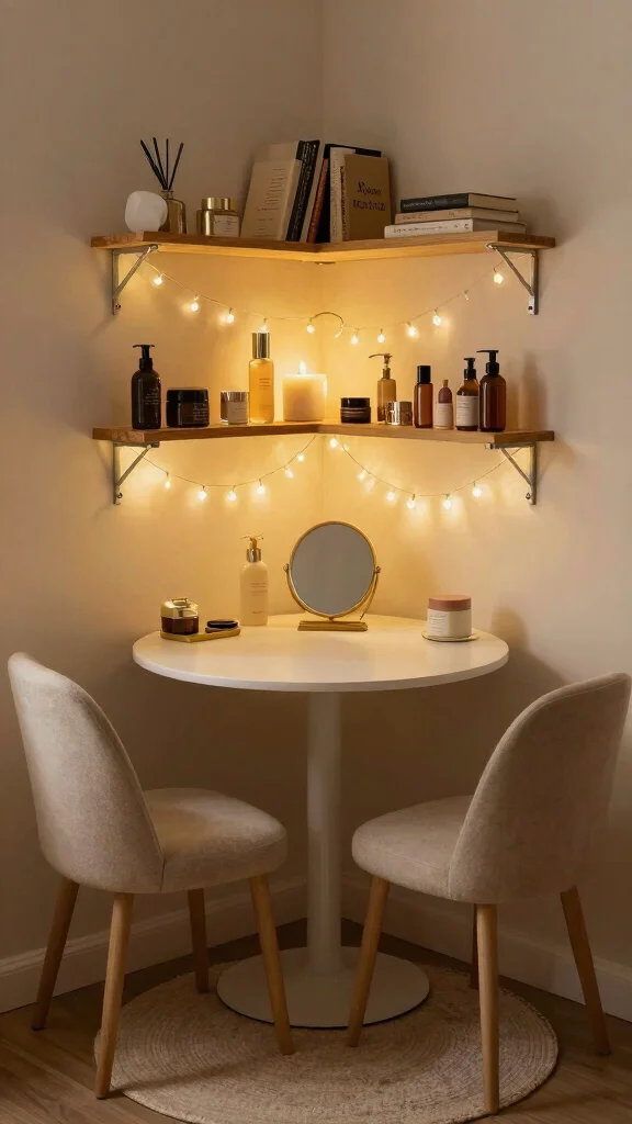 Transforming a small corner of your room into a cozy dressing nook can create an intimate and inviting area. A corner table allows you to make the most of underutilized space, providing a perfect spot to get ready. Consider a small circular table paired with a comfortable chair to enhance the cozy vibe.
