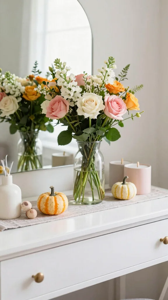 Consider refreshing your dressing room table decor with the changing seasons. Seasonal decor adds a dynamic element to your space, keeping it feeling lively and inviting throughout the year. Use vibrant colors and seasonal elements to celebrate the time of year and bring nature indoors.