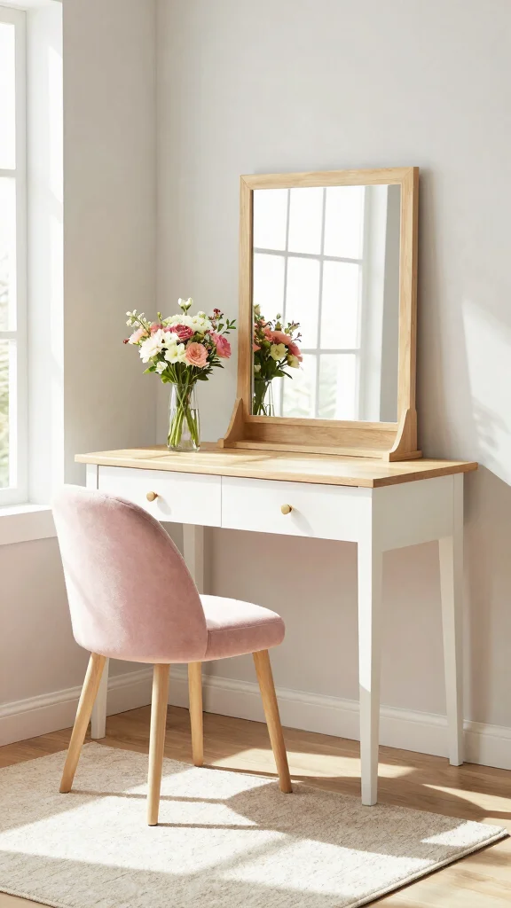 3. Consider Lighting: The placement of your table is crucial for good lighting. Position it near a window or add a light fixture above to make makeup application easier.