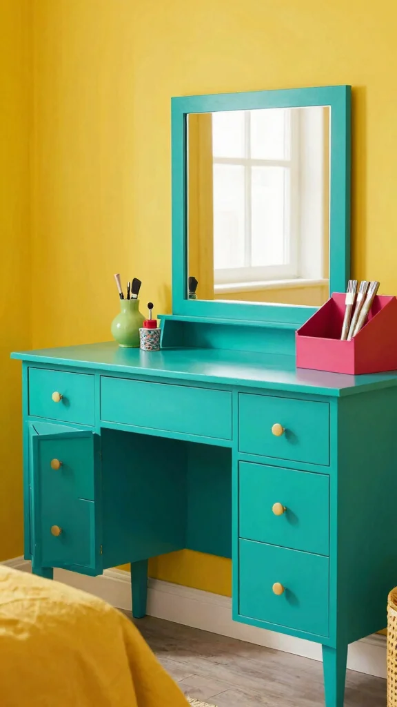 To effectively incorporate bold colors, consider painting an accent wall behind your table for dramatic effect. Choose colorful organizers and decor items that stand out against a neutral table. Mixing and matching patterns can also contribute to a fun, eclectic aesthetic.