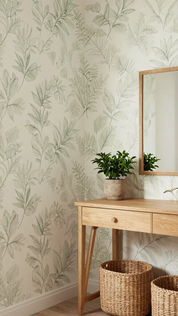 Fun fact: Nature-inspired dressing room wallpaper with leaf patterns can reduce perceived stress by up to 20%. This calming effect grows when paired with earthy tones and natural wood.