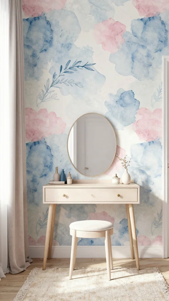 These designs feature blending colors and flowing patterns, creating an ethereal atmosphere in your dressing room. Watercolor wallpapers evoke tranquility, making them a beautiful choice for your personal retreat.