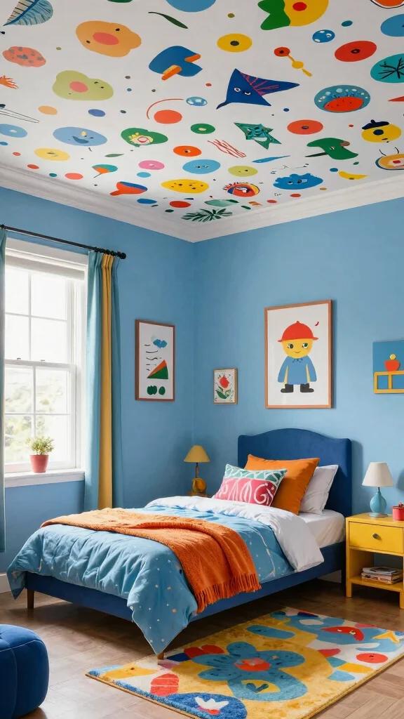 Fun fact: multicolor patterned ceilings can make a room feel up to 12% taller, instantly boosting whimsy. Pair them with neutral walls to keep the space balanced, so your false ceiling colour ideas stay the focal point. This works great in kids’ rooms or creative studios.